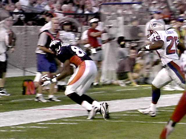 | Shannon Sharpe puts a block on a Patriot springing Griffith loose for 15 yards and a 1st down! | #84 #29 | Click Here! |
