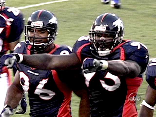 | Ed McCaffrey struggles to get into the endzone with the ball setting up Davis' 1st rushing TD! | #87 | Click Here! |