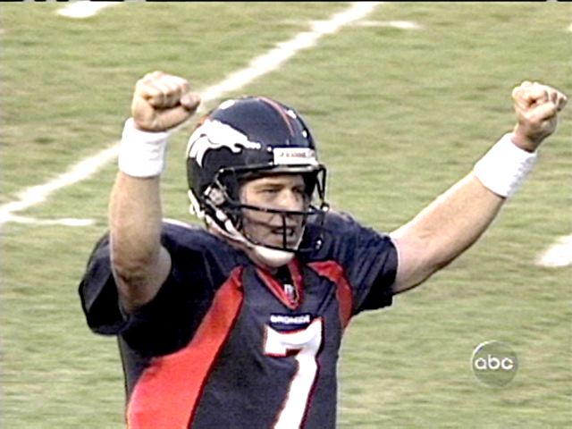 | John Elway cheers after hitting Shannon Sharpe in the endzone for the 1st TOUCHDOWN! | #7 | Click Here! |