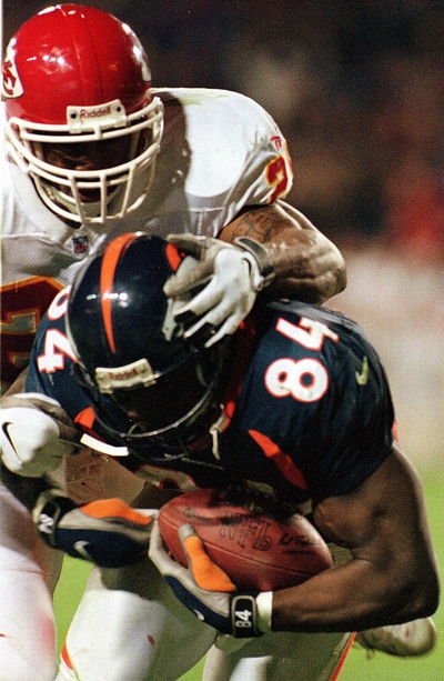 | Shannon Sharpe gets hit by the K.C. defender in the endzone but it's too late, TOUCHDOWN Broncos! This was Sharpe's only catch of the day but it was a beauty!! | #84 | Click Here! |