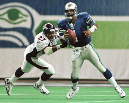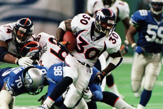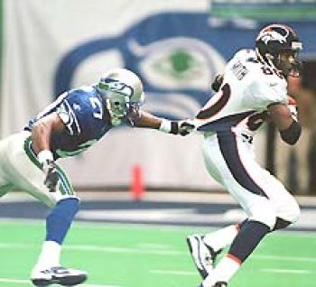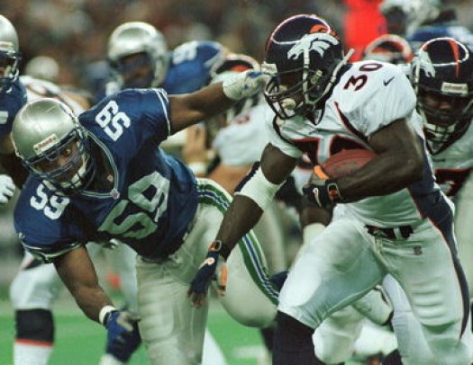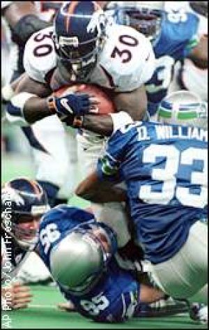 | Terrell Davis slashes through the Seahawk defense for a few more hard-earned yards, he ended up with 208 yards on the day, Go Terrell! | #30 | Click Here! |