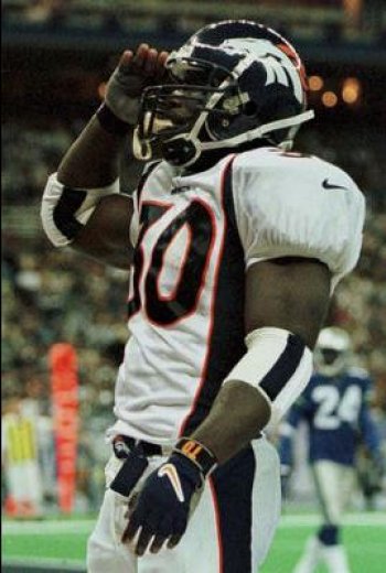 | As is customary after a Bronco TOUCHDOWN, Terrell salutes his teammates and then the very quiet crown in the Kingdome. Looking sharp there TD! | #30 | Click Here! |