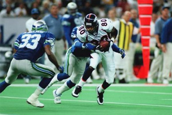 | Rod Smith keeps out of the grasp of the Seahawk defender after another great reception! | #80 | Click Here! |
