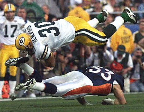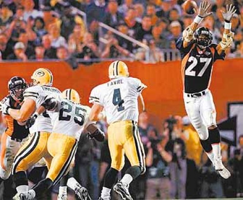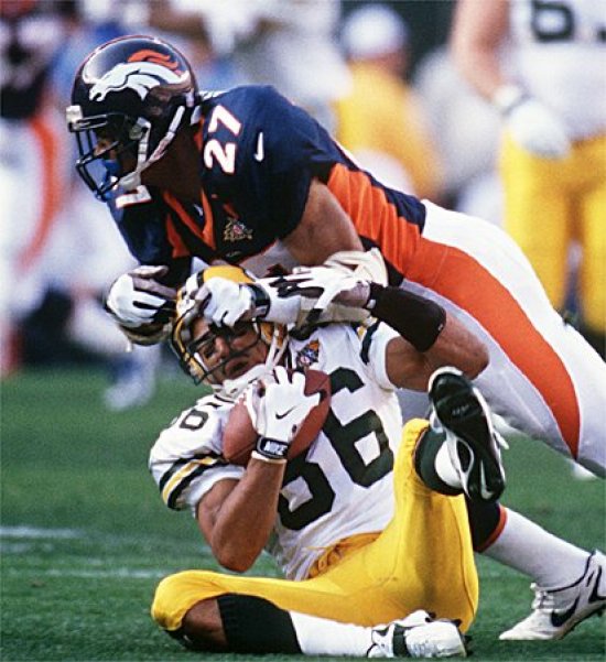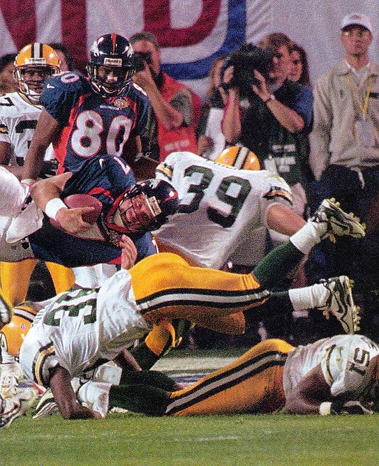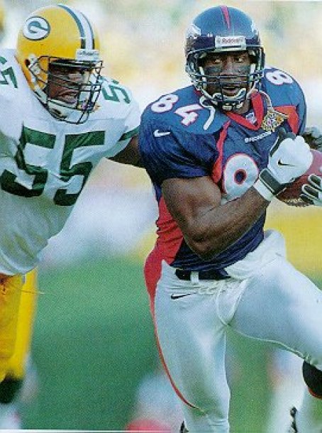 Shannon Sharpe evading the Packer defense on a nice pass play!