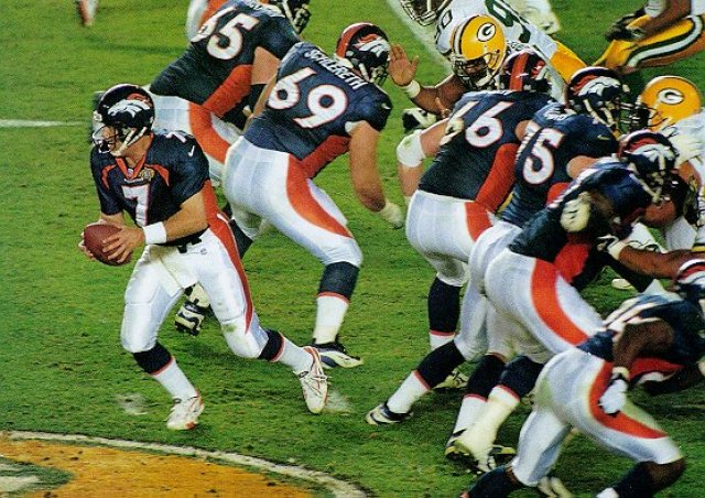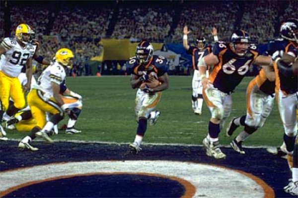 The toughest Offensive Line clears a hole for Terrell Davis!