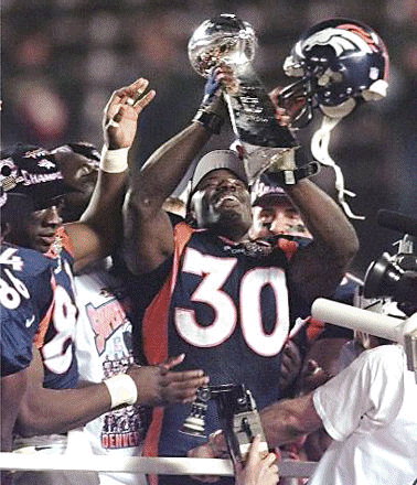 Terrell Davis sharing in the glory with the Superbowl Trophy!