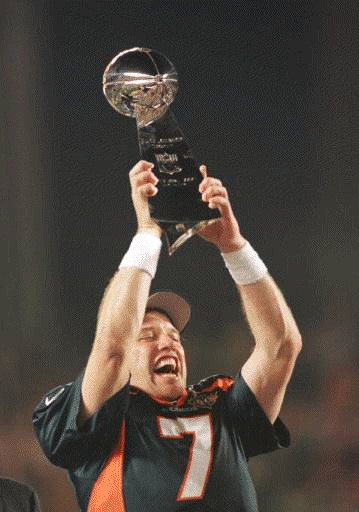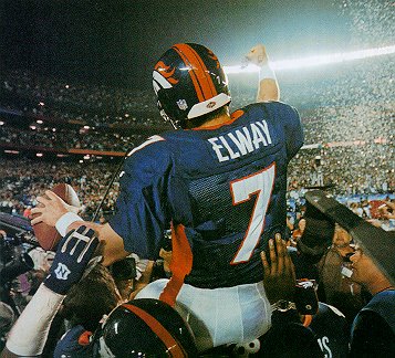 John Elway being carried of the field in VICTORIOUS GLORY!