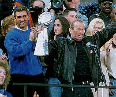 Mike and Pat holding the Superbowl Trophy during the Denver parade!
