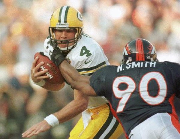 Farve gets a taste of what a REAL Defense is like! Can you say FUMBLE!