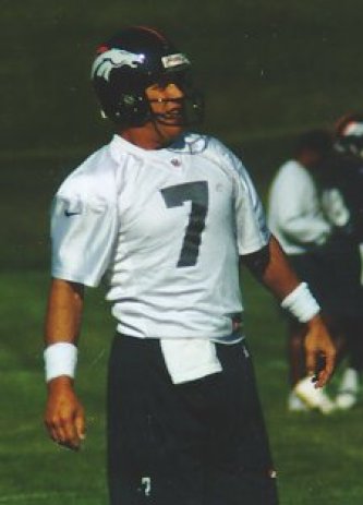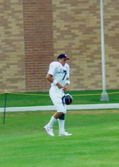 Good close-up of John Elway as he heads off the practice field to the locker room ...