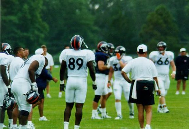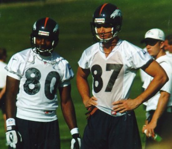 Rod Smith and Ed McCaffrey waiting their turn during some passing drills ...