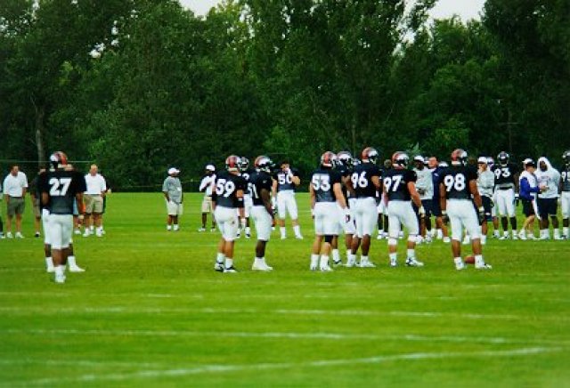 The Defensive Unit out on the field waiting to start some practice scrimmage ...