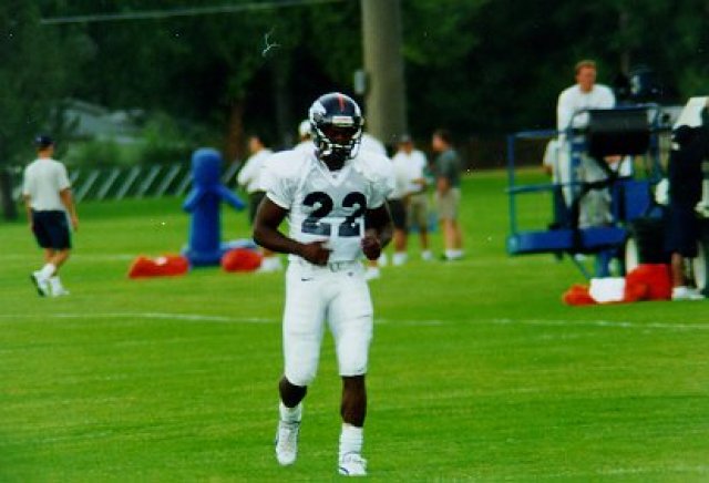 A nice close-up of Terrell hitting the hole during a practice running play ...